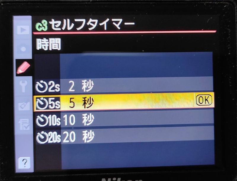 タイマーの秒数が選択可能。
